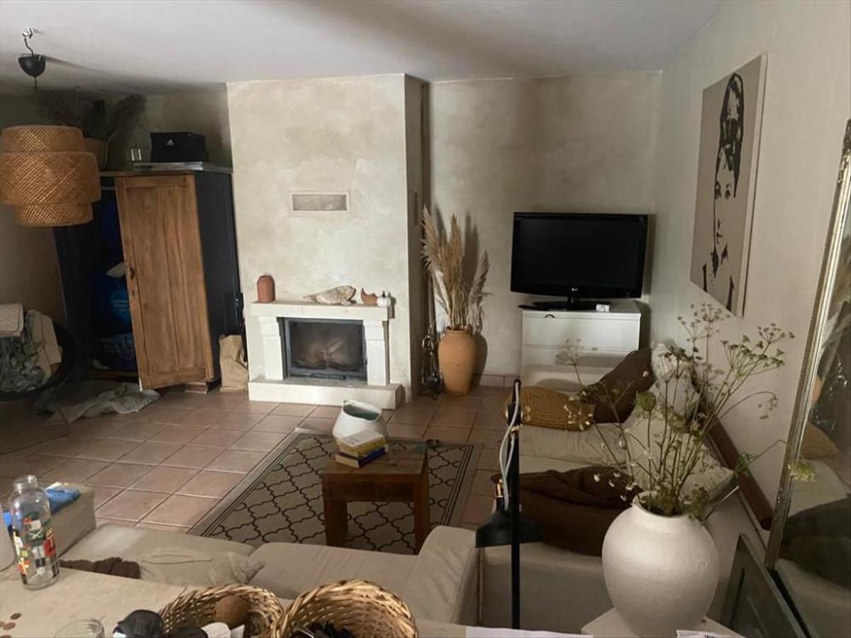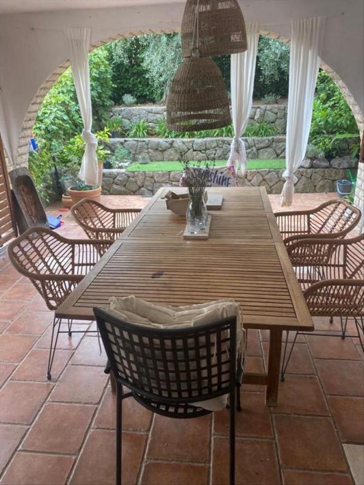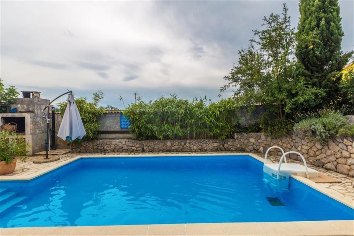 Található benne előszoba, konyha étkezővel és nappalival, három hálószoba, két fürdőszoba. a nappali egy rusztikus kőburkolatú kertre nyílik, ahol egy melléképület, azaz egy másik 32 m2-es garzonlakás, medence napozóterasszal, fedett terasz és tégla grillező található.