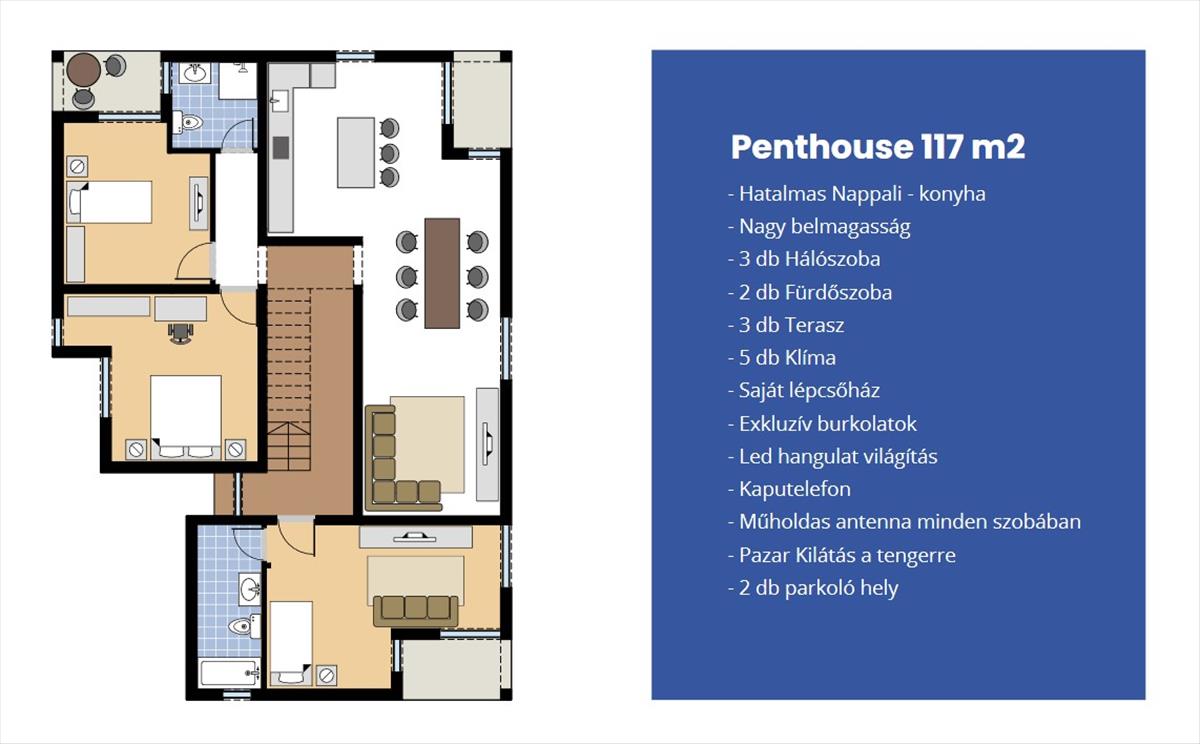 Penthause / 117 m2 + 3 db 6 m2 -es erkély
