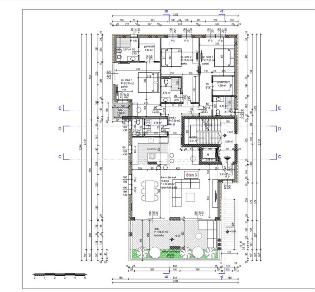 Az apartman teljes alapterülete 189 m², és az első emeleten helyezkedik el. Az 3-as számú apartmanként van nyilvántartva, ára 1. 450. 000 Eur. a kialakítás magában foglal egy kifinomult konyhát étkezővel, egy tágas nappalit, egy vendégfürdőt és WC-t a nappaliban, valamint három elegáns hálószobát, mindegyik saját fürdőszobával. Egy nagy fedett terasz nyújt nyitott kilátást, amely kiterjeszti a lakóteret és tökéletes helyet teremt a pihenésre. Az apartmanhoz két garázshely tartozik, amelyek az épület pincéjében találhatók, valamint egy 13 m²-es tárolóhelyiség.