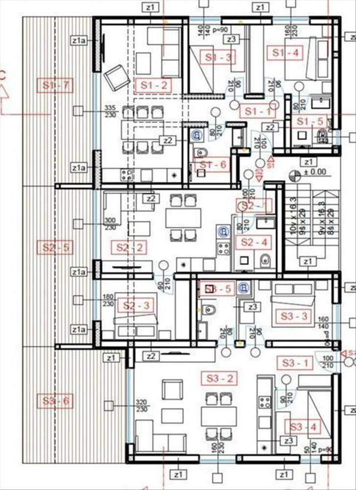 S4, 1. emelet: 58, 75 m2, 2 hálószoba, terasz. Ár: 550 000 €.