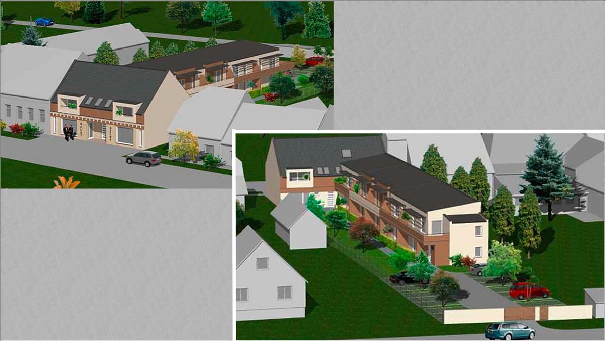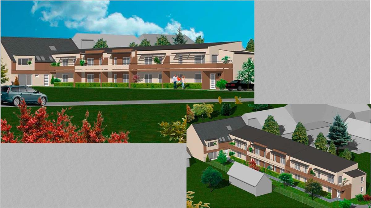 Jánossomorja település központjában épül ez 2 szintes társasház, melyben 13 lakás+ 2 üzlet lesz kialakítva.