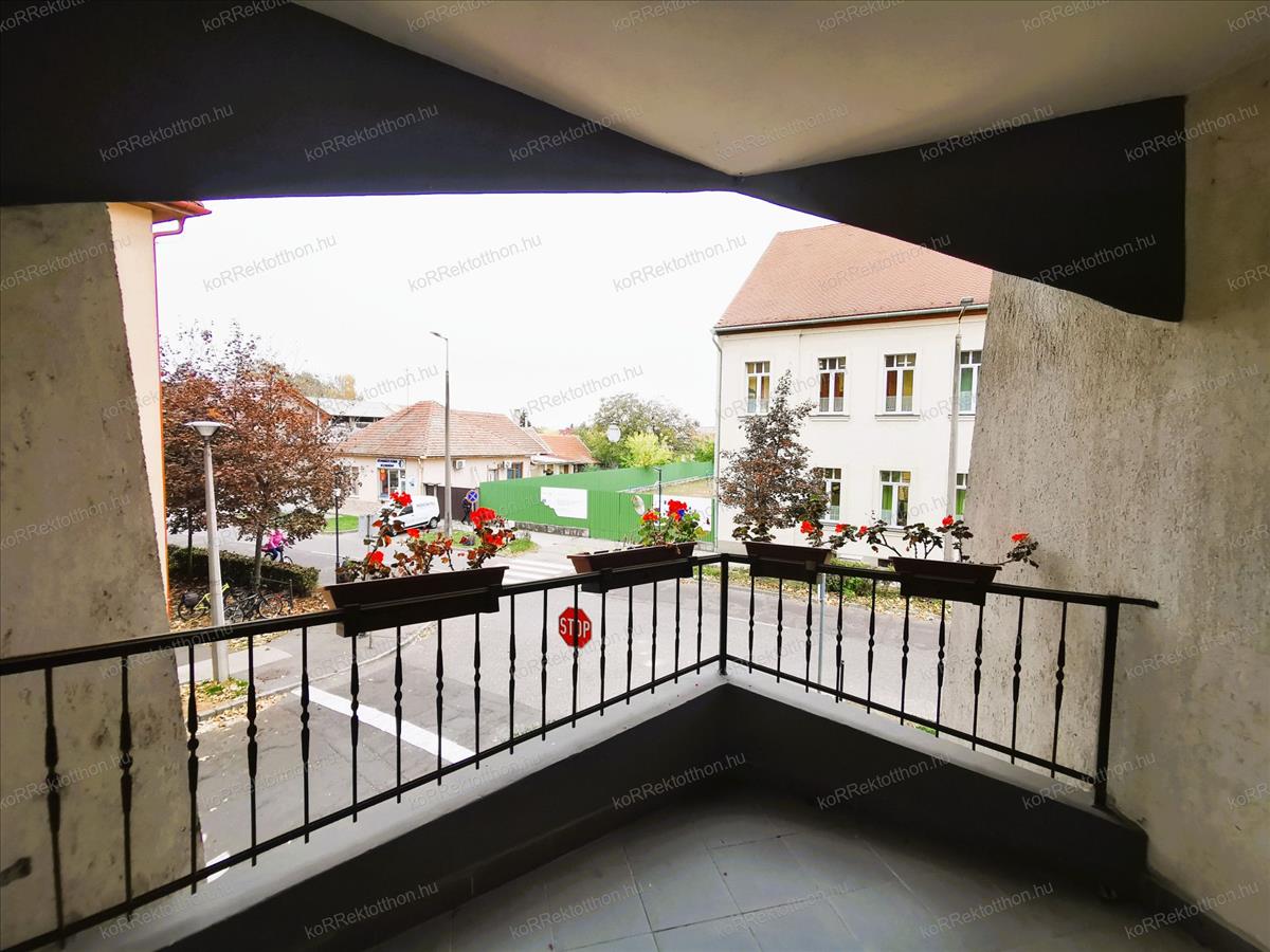 Elosztása: előszoba, nappali–étkező–konyha, 1 hálószoba, fürdőszoba, külön wc, nagy méretű erkély és egy kisebb erkély.
