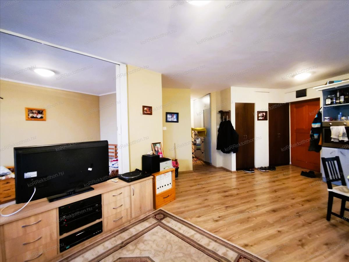 Elosztás: nappali–étkező–konyha + 1 szoba