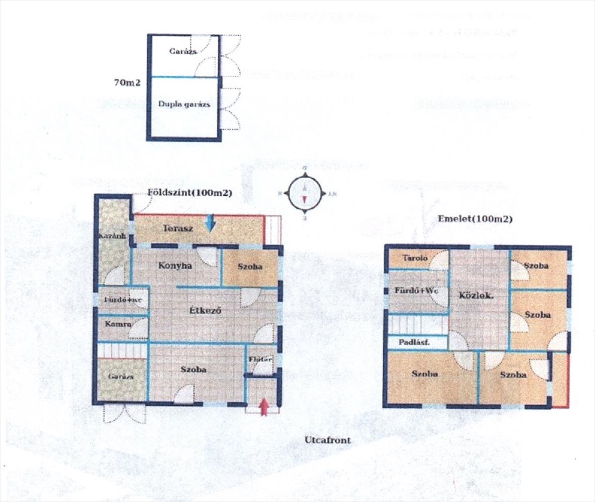 Jelenleg kétszintes, 100 m2 alapterületekkel, továbbá a tetőtér beépítése lehetséges.