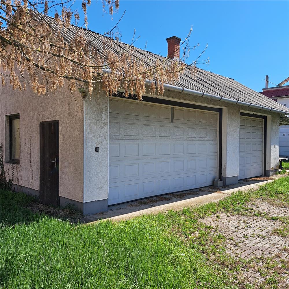 A telken található egy 70 m2-es 3 állásos garázs, mellette fedett tároló, az udvar hátsó részén sütögető.