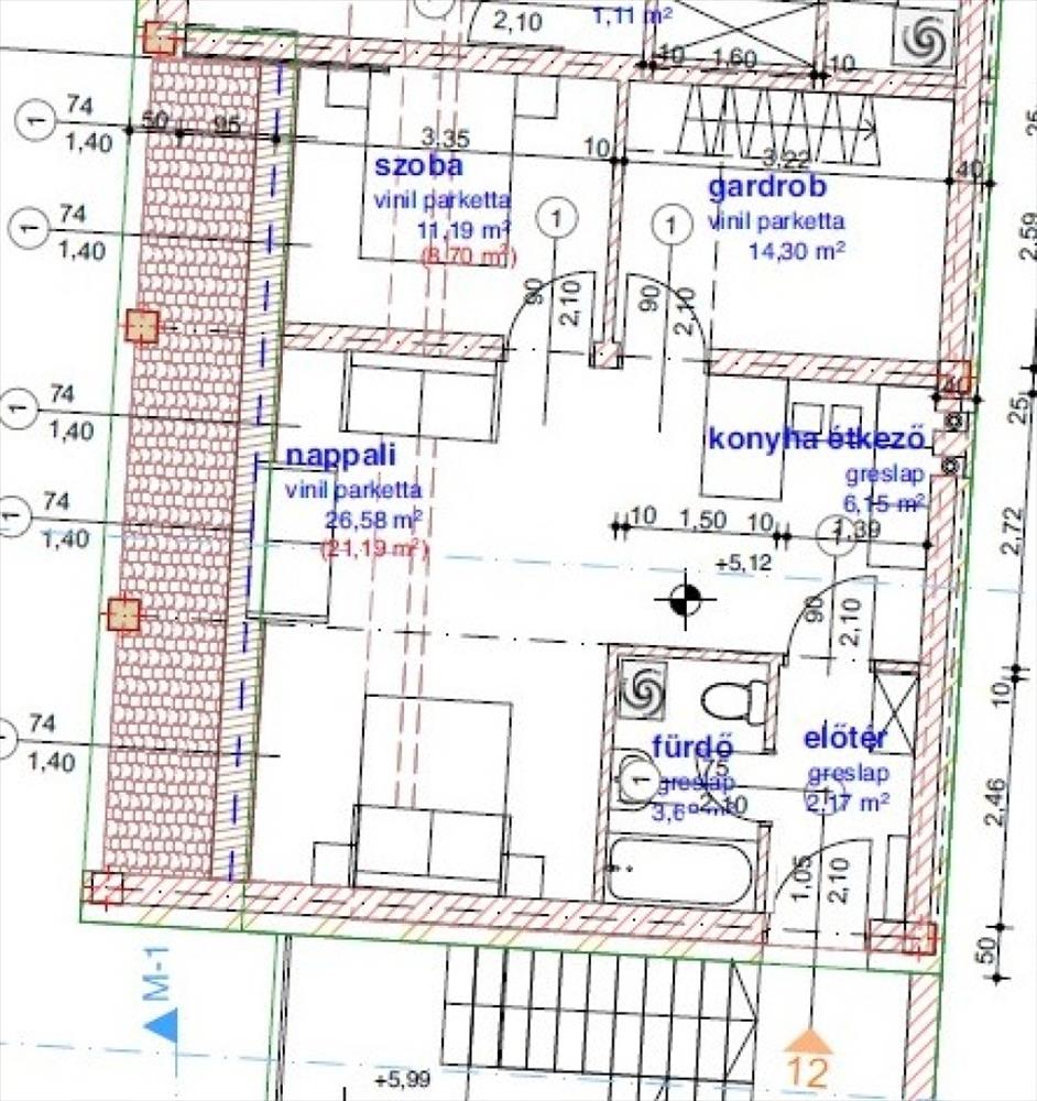 A projekt 12-es számú, második emeleti lakása 57, 43 m2 alapterületű. a jól átgondolt terveknek köszönhetően a lakás elosztása kiváló, az életterek kialakításánál a funkcionalitás dominált, kényelmes életteret biztosítva leendő lakóinak.