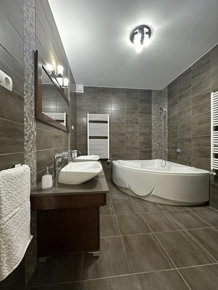 A lakásban prémium minőségű konyhai gépek, fürdőszoba szaniterek és anyagok kerültek felhasználásra és beépítésre.