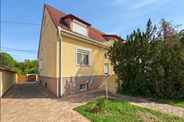 Eladó a focus ingatlan kínálatából Kecskeméten, a Hunyadiváros csendes részén, karbantartott, szigetelt nappali + 4 szobás ikerház hatalmas garázzsal és pincével.