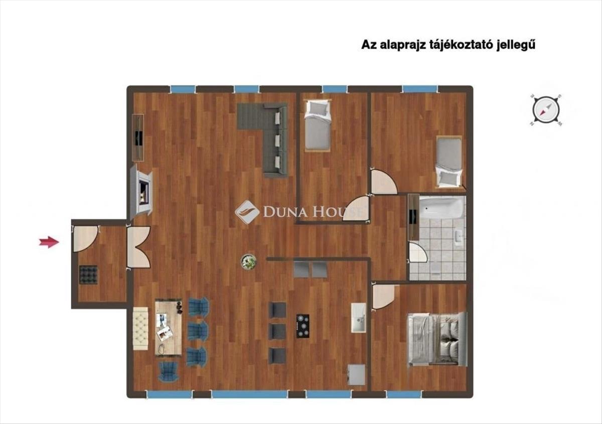 Elrendezés: nappali + 3 szoba