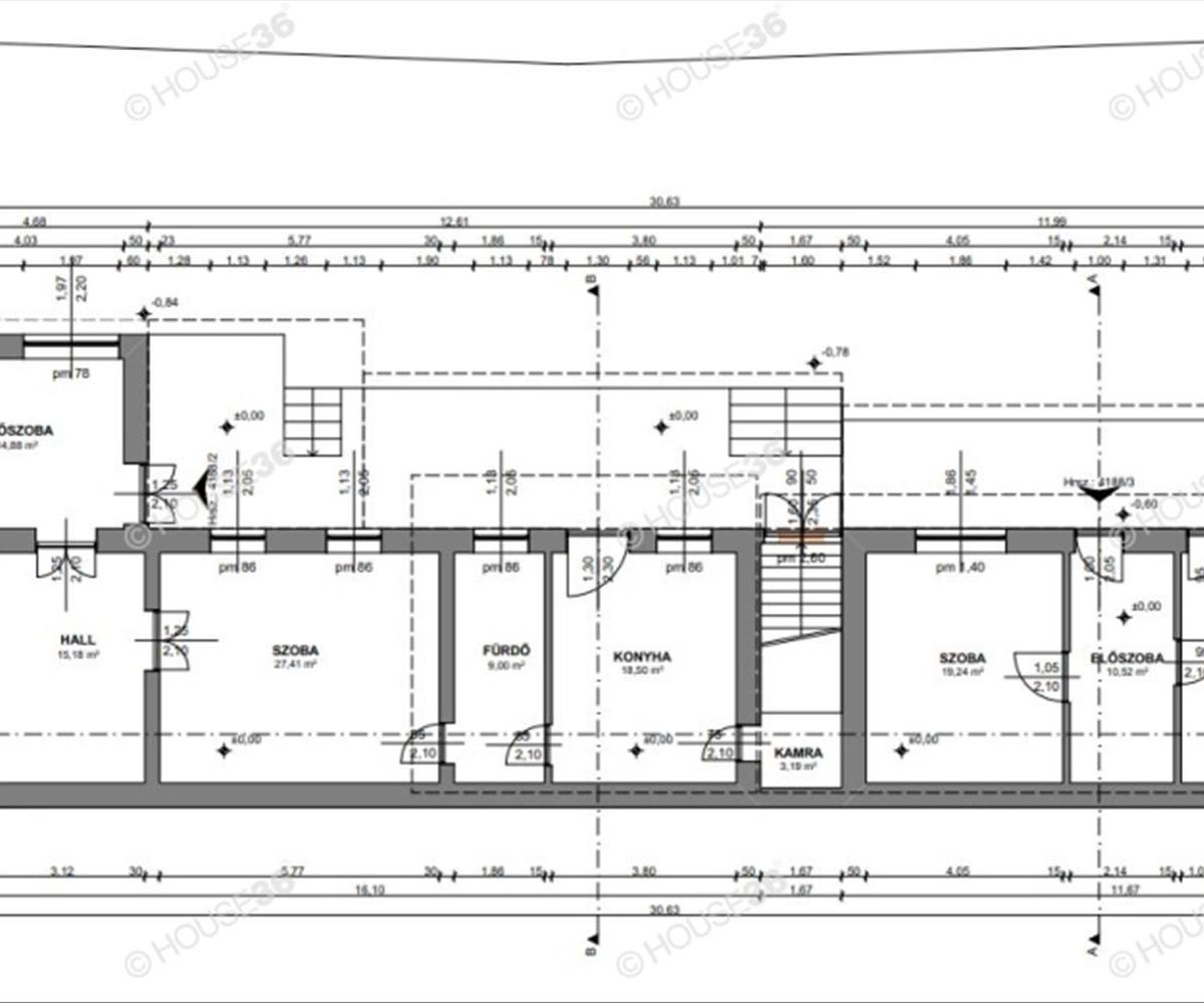 Az épület földszinti része 135,4 m2, és 3 bejárattal rendelkezik, az emelet jelenleg 100 m2, összesen 235 m2!