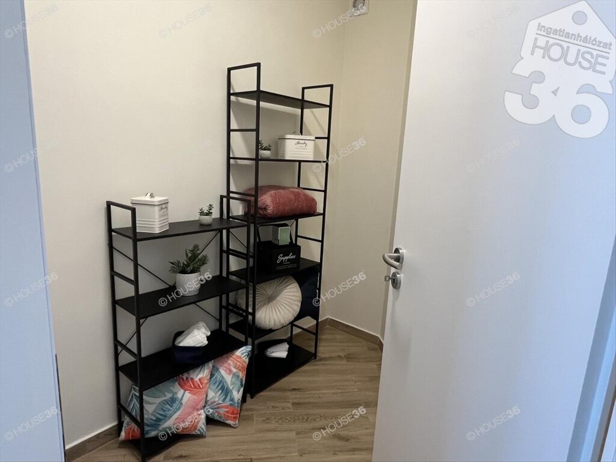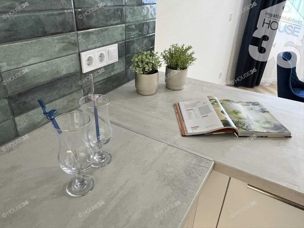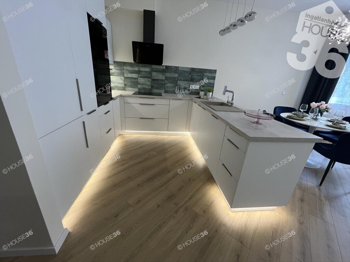 A lakás teljes területe laminált padlóval burkolt, kivéve a háztartási helyiséget, a fürdőszobát és a külön WC-t. Ezekben a helyiségekben páraelszívó rendszer működik. a minőségi álomkonyha varázsát egyedi hangulatvilágítás teszi még vonzóbbá.
