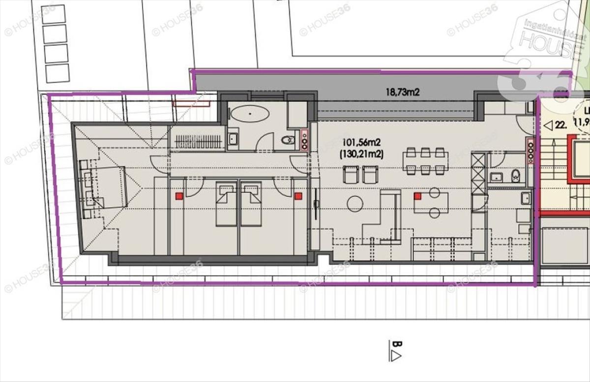 Az épület III. emeletén, bruttó 130, 21 m2, nettó 101, 56 m2 lakóterű, nappali + 3 szobás lakás, 18, 73 m2 erkéllyel megvásárolható.