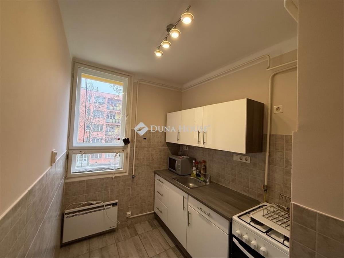 Faparketta, cserélt konyhabútor, felújított fürdő-wc.