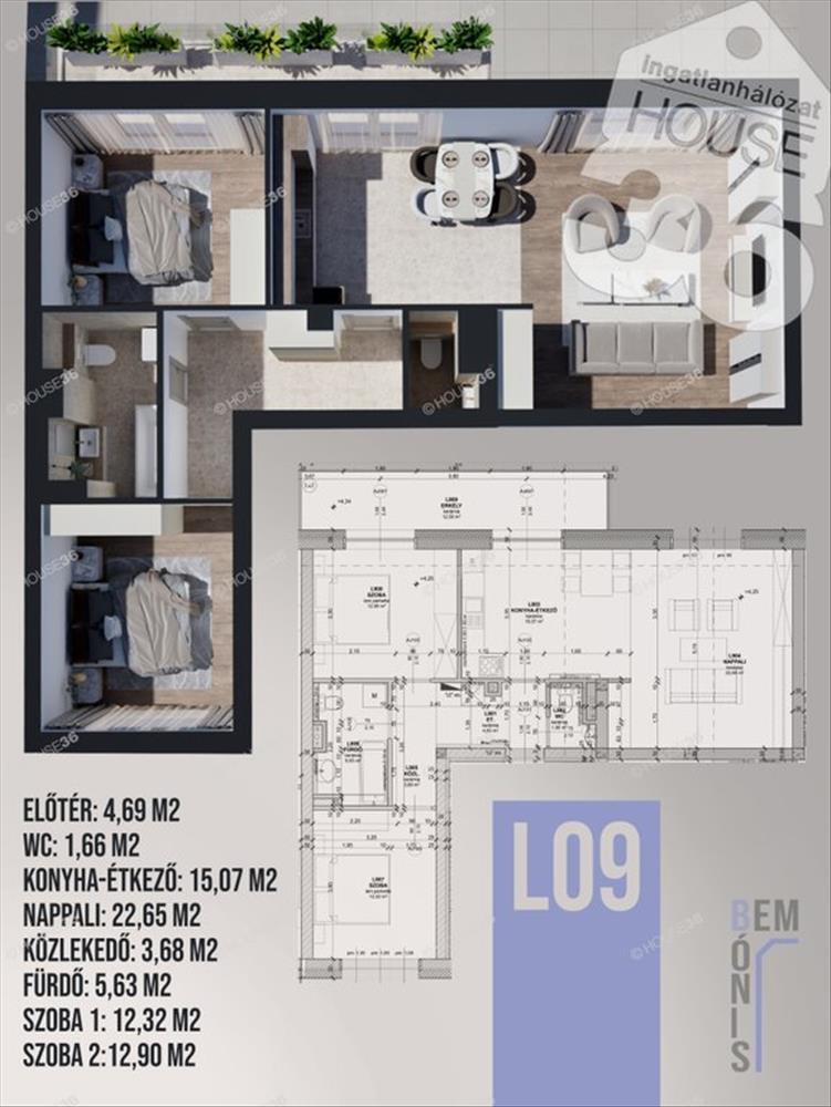 A ház egyik legkülönlegesebb darabja. a 78, 60 m²-es lakótérhez egy 12, 58 m²-es erkély tartozik, amely tágasabbá és még vonzóbbá teszi az ingatlant. a terek elosztása biztosítja a privát szférát, miközben a közösségi helyiségek a családi és baráti együttlétekre hívogatnak.