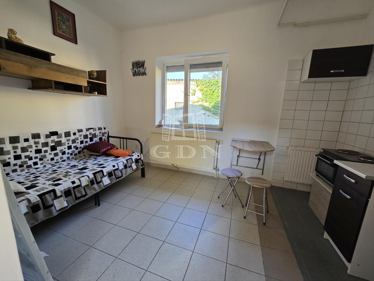 Alsó szinten egy 19 nm szoba, konyha, wc, fürdőszoba tusolóval.
