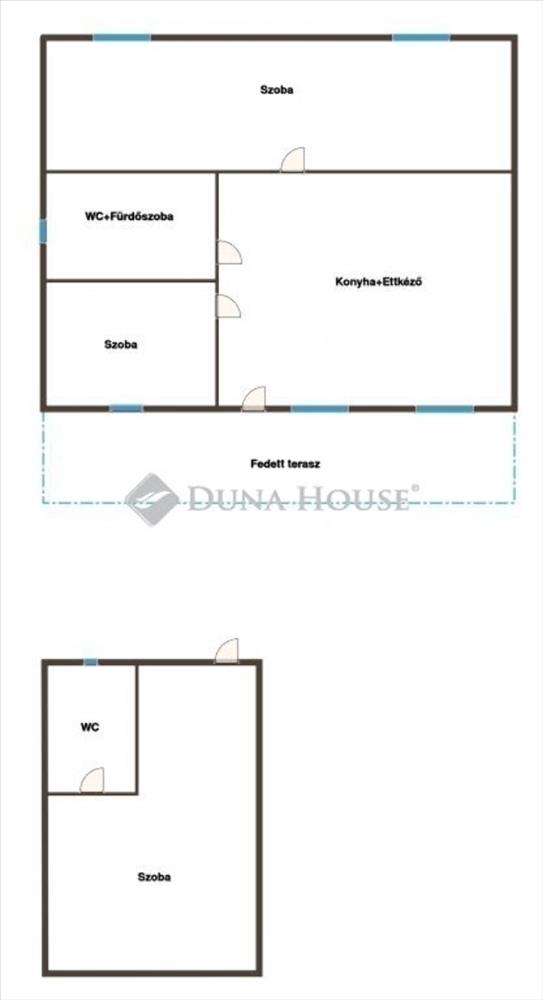 Helyiségek: 2 szoba, konyha + étkező, wc + fürdőszoba