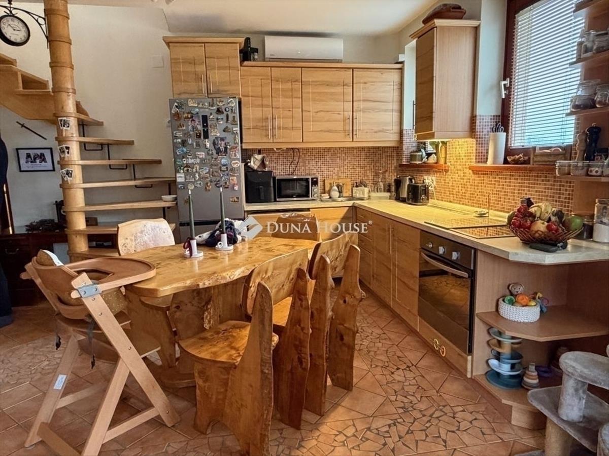 Eladó belső kétszintes tetőtéri lakás Kecskemét, VacsiközbenKecskemét egyik közkedvelt, széles és elegáns utcájában kínálunk megvételre egy 2002-ben épült, rendezett társasház 2. emeletén található, belső kétszintes tetőtéri lakást, kiváló térkihasználással és kifejezetten élhető elrendezéssel. a társasház tiszta, karbantartott, a lakóközösség kulturált és nyugodt ideális választás családnak, pároknak vagy akár otthonról dolgozóknak is. Méret és kialakításNettó alapterület: 72, 4 nm (ez egyben a hivatalos, tulajdoni lap szerinti méret is), valós / bruttó használati terület: kb 93, 0 nm , belső kétszintes tetőtéri lakás sok jól használható, tárolásra alkalmas puffer térrelAlsó szint helyiségeiElőtér, 36 nm -es, kimagaslóan tágas amerikai konyhás nappali, 14 nm -es kényelmes méretű szülői hálószoba, kádas fürdőszoba, wc külön helyiségben, kamra / háztartási tárolóA nappali mérete és arányai miatt a lakás központi tere valóban élettérként használható étkezővel, dolgozósarokkal is jól berendezhető. Tetőtéri szintBelső előtérből két külön nyíló, korrekt méretű tetőtéri szoba, zuhanyzós fürdő WC-vel, kis gardróbhelyiség, a lépcsőfeljáró mellett nagyobb tároló/puffer terület, ami ritka és nagyon praktikus tetőtéri lakásoknálA lakás szobakiosztása és a dupla fürdőszoba és wc alsó és felső szinten való elhelyezése miatt tökéletesen alkalmas egy kétgenerációs szeparálásra is. Az ingatlan rezsiköltsége rendkívül alacsony. a közös költség összege havonta 14. 000 Ft, az éves gázszámla 115. 000 Ft volt egy kisgyermekes családnak, az éves áram számla 78. 000Ft volt. a társasház belső udvarán a tulajdonosok számára a gépkocsibeállás lehetősége díjmentesen elérhető, ugyanakkor a környék annyira biztonságos hogy a szomszédok jellemzően a ház előtti utcai részen parkolnak. Zárt saját garázsok is elérhetőek a társasházban, akár bérletre, akár vásárlásra a későbbiekben. Műszaki jellemzők Tégla építésű társasház homlokzati hőszigeteléssel Azonnal költözhető, különösebb felújítási igényektől mentes ingatlan Gáz fűtés modern kondenzációs kazánnal Hőszigetelt, thermo üveges fa nyílászárók Jó hőtartás és kedvező fenntarthatóságKörnyezet és hangulat Széles, világos, rendezett utca Nyugodt, jól élhető városrész Az ablakokból kellemes kilátás a környékre Jó infrastruktúra, gyors elérhetőség a város fő pontjai feléVacsiköz Kecskemét egyik megbízhatóan jól értékesíthető, keresett városrésze, amely elhelyezkedésével és lakókörnyezetével jól pozicionálható mind saját célra vásárlók, mind befektetők számára. a terület erőssége a belváros közelsége és a nyugodt, kisvárosias hangulat egyensúlya. Jó tömegközlekedési kapcsolatok, bevásárlási lehetőségek, oktatási és egészségügyi intézmények a közelben, rendezett utcák, kialakult lakóközösség. FIX 3% lakáshitelre megvehető