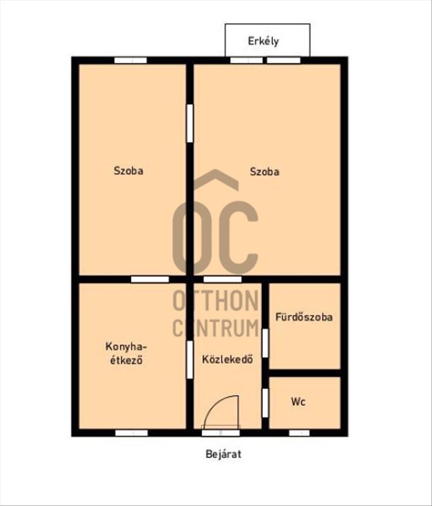 A lakás elosztása praktikus és jól élhető: két külön nyíló szobával rendelkezik, így kedvező életteret kínál a mindennapokhoz.