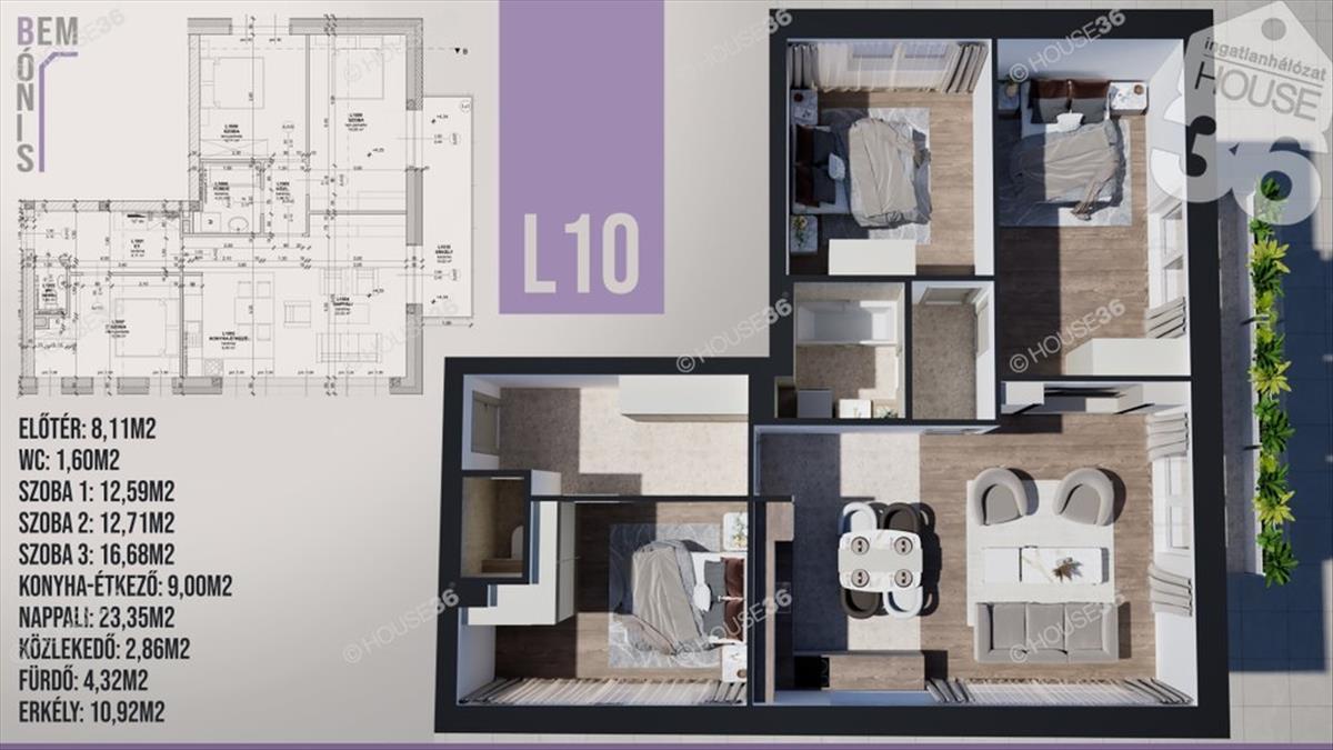 A lakáshoz sorszámozott parkoló vásárolható.
