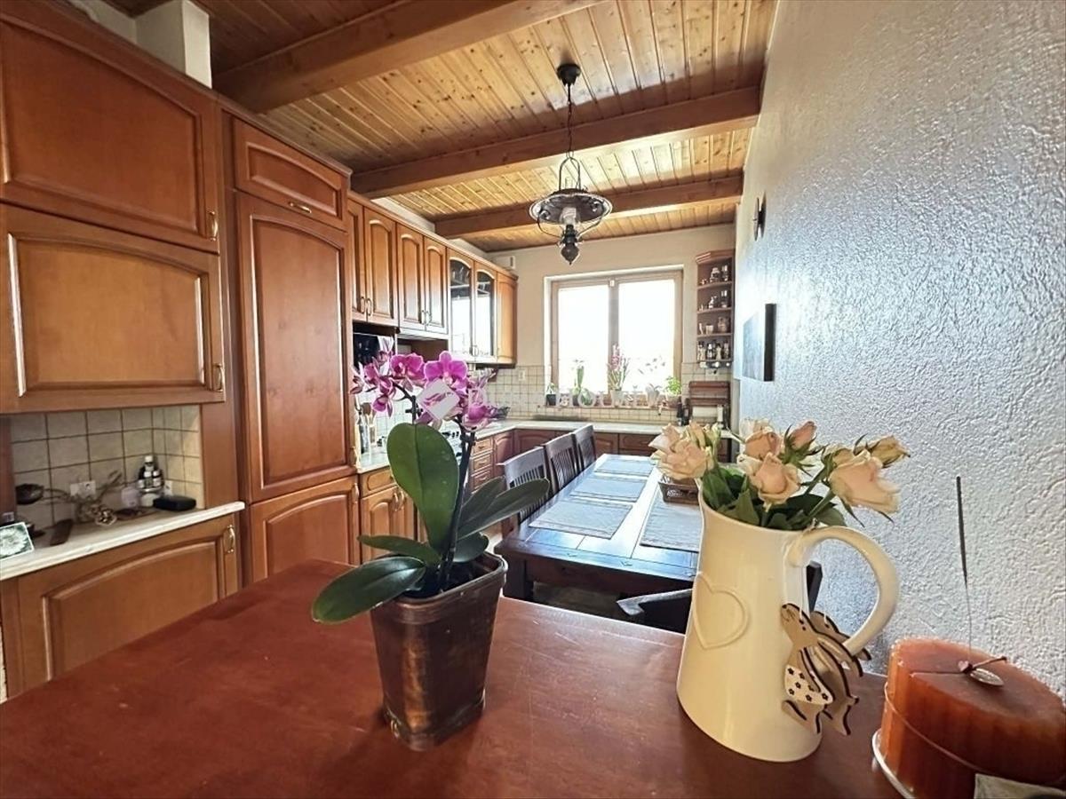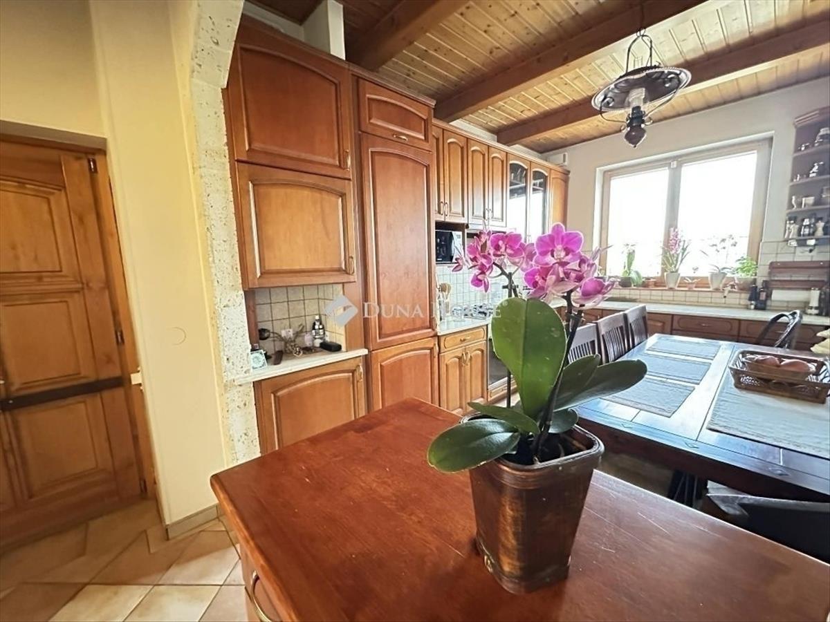 A lakás különleges hangulatát a fa gerendák, fa berakások és dekoratív téglaelemek adják, amelyek egyedi, meleg atmoszférát teremtenek. Az igényes belső kialakításnak köszönhetően az otthon egyszerre elegáns és otthonos.
