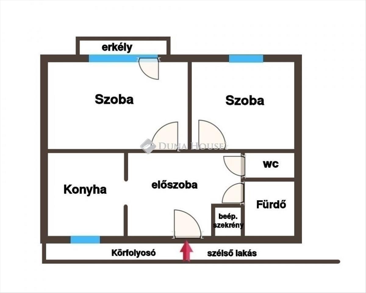 Az ingatlan egy körfolyosós társasház 1. emeletén található, jól kihasználható elrendezéssel: