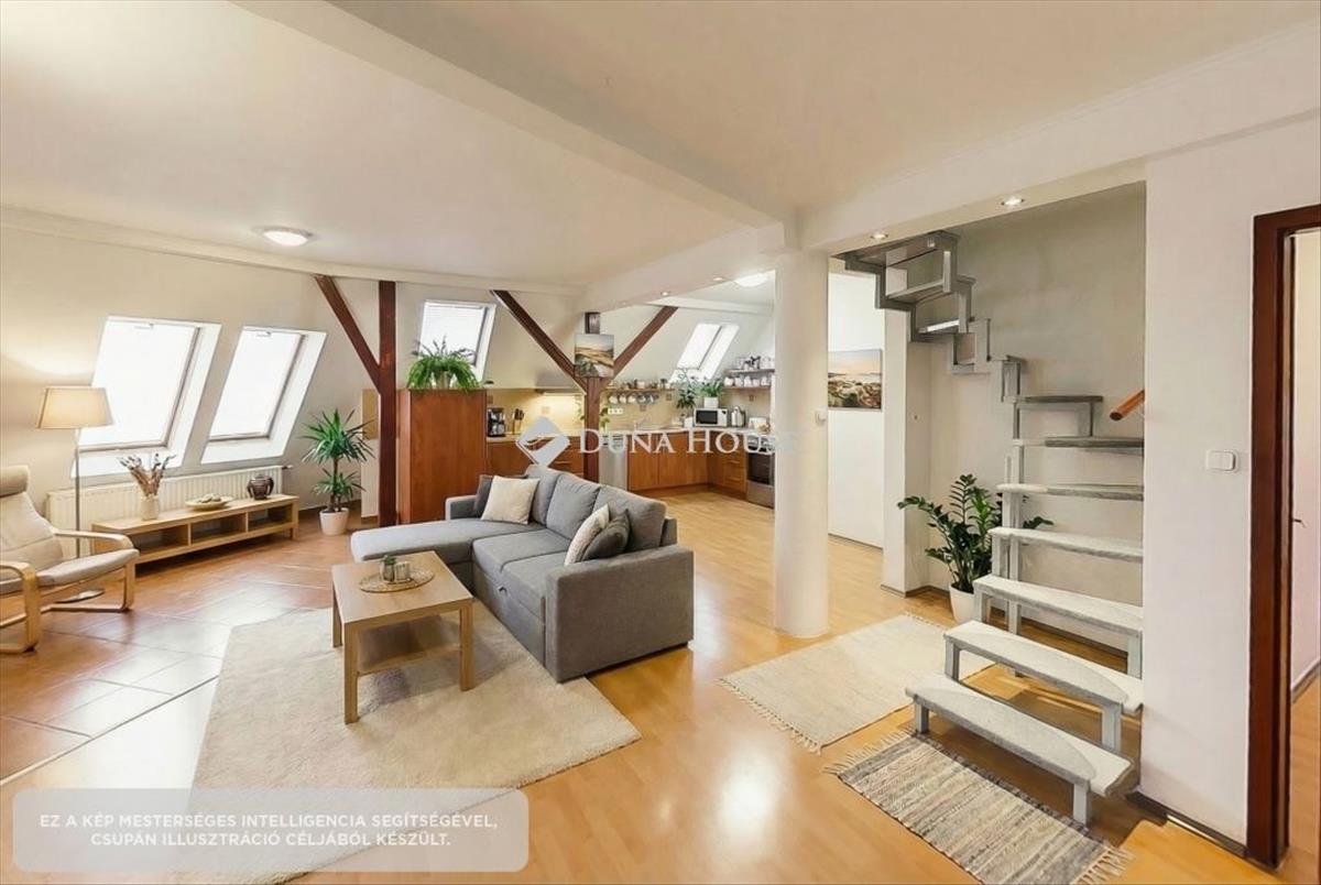 Kecskemét Belvárosában eladó egy tágas, világos, 98 m²-es, kétszintes téglalakás.