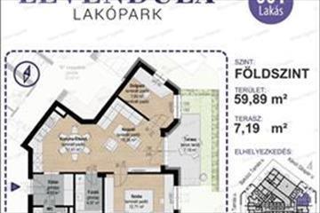 Levendula lakóparkban földszinti nappali + 2 szobás lakás várja első tulajdonosát!A lakás 59, 89 m2, melyhez 7, 19 m2-es terasz tartozik.
