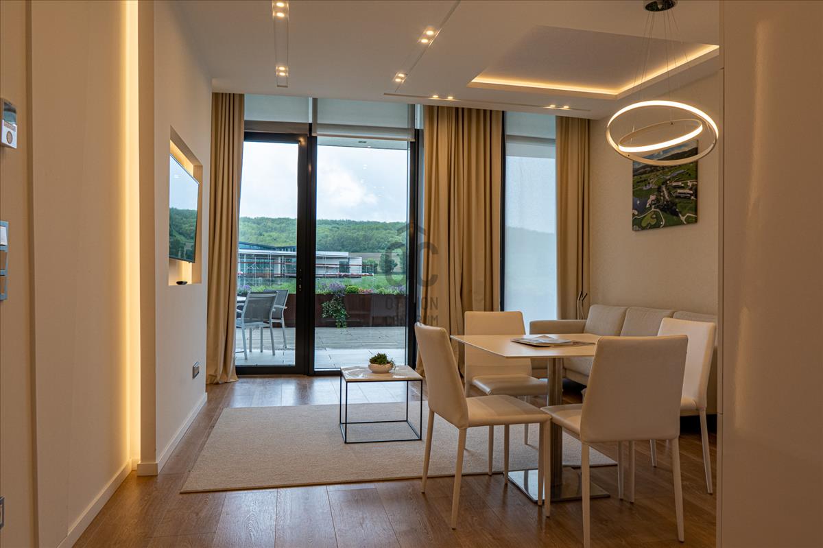 Az exkluzív apartmanok hatalmas ablakai a tóra, golfpályára, a környező lenyűgöző tájra nyújtanak csodálatos kilátást. a legmodernebb belsőépítészeti és műszaki koncepciók és megoldások alkalmazásával épületenként 2-3 típusú design-ba öltöztetett bútorokkal, lakás textíliákkal, a megfelelő kiegészítőkkel különböző méretű lakások kerülnek értékesítésre.