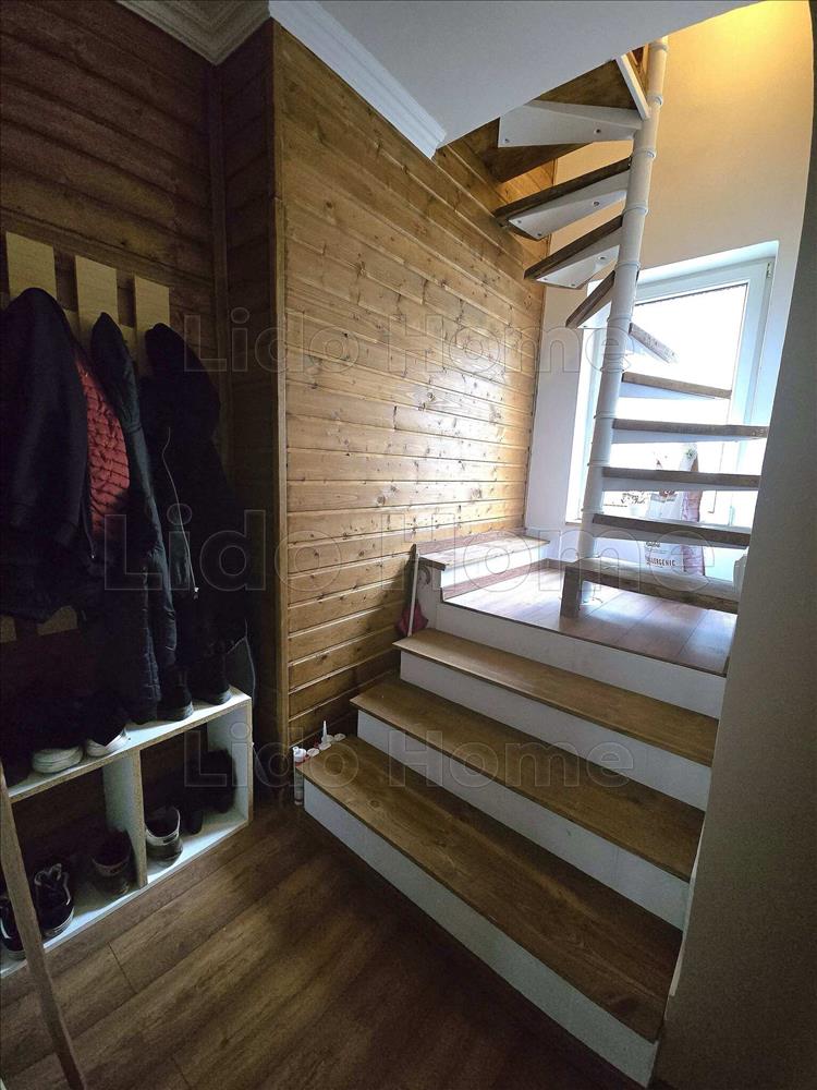 Helyiségei: a földszinten egy amerikai konyhás nappali, egy külön vendég wc, egy fürdőszoba és egy hálószóba lett kialakítva fedett terasszal, kertkapcsolattal. Az emeletre a lépcsőházból felérve egy előtér rész, gardróbbal, egy gyerekszoba, hálószoba gardrób kialakítással, fürdőszoba található. a hálószobából nyílik egy erkély is, ami a hátsó kertre néz.