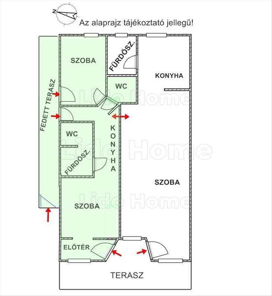 -A lakás jelenleg két apartman lakásra van osztva ( 35 m2 + 29 m2)bármikor újra átjárható, egybenyitható ajtóval.