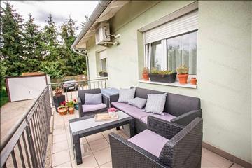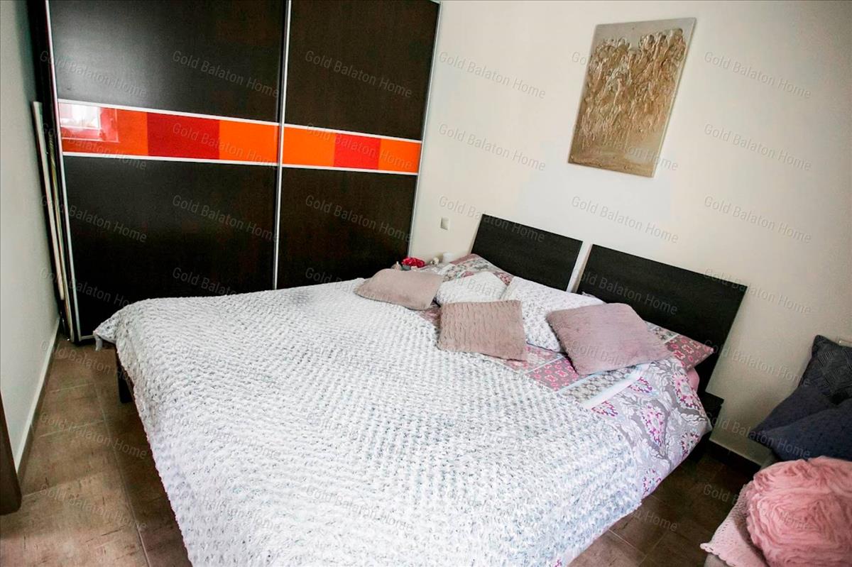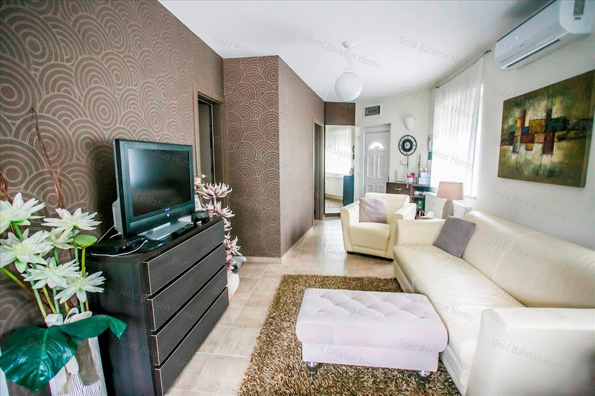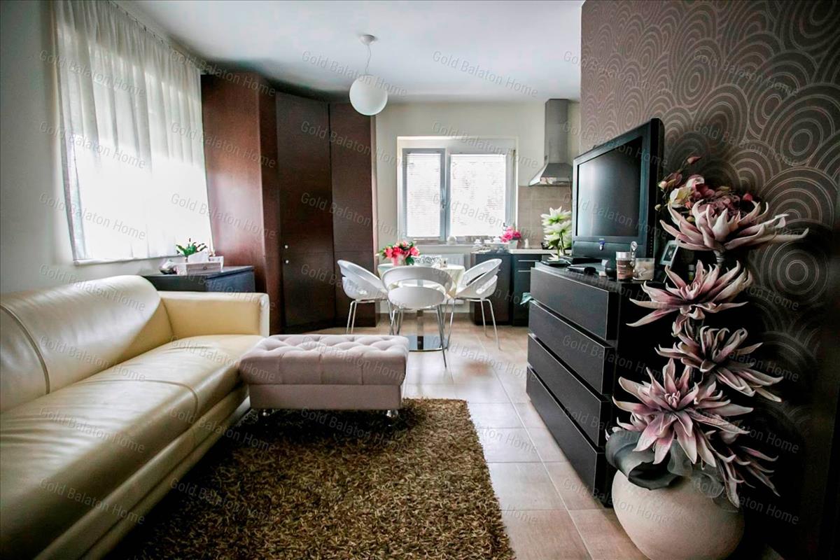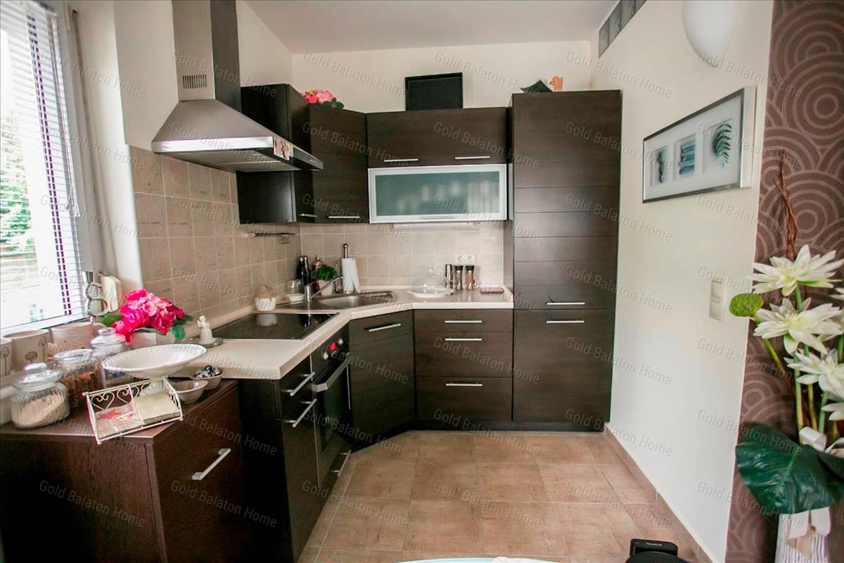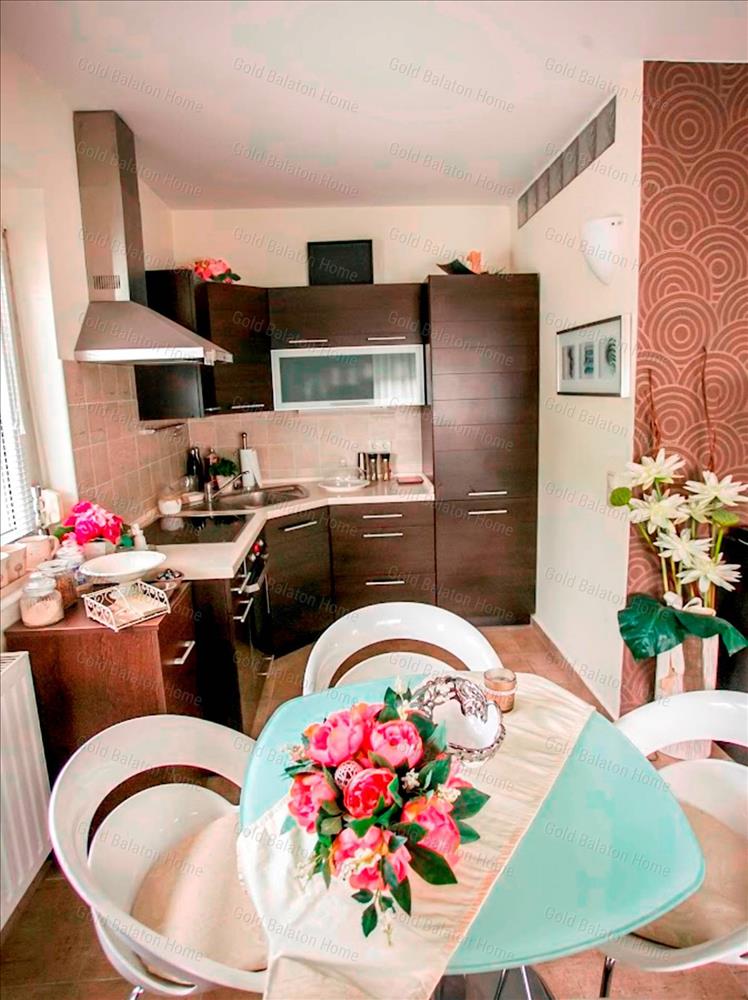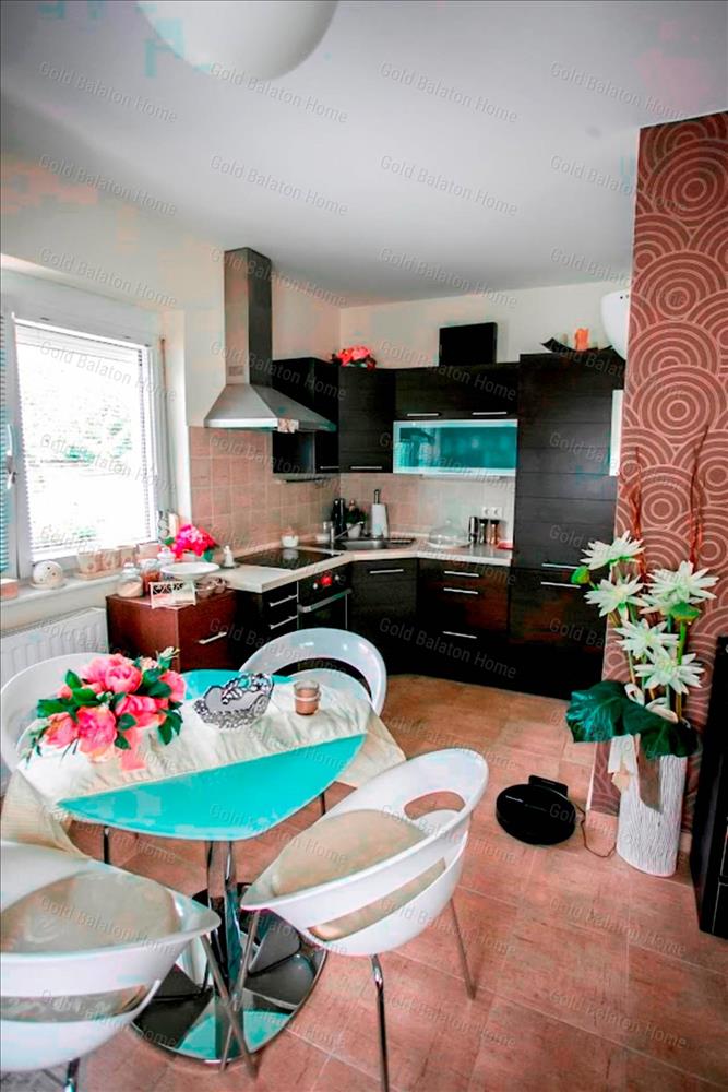 Egyszintes nívós lakás egyedi bejárattal, amerikai konyhával, 1 hálószobával, fürdőszobával, nagy terasszal, garázzsal a Hévízi-tótól 3 000 méterre, a Balatontól 5 500 méterre.