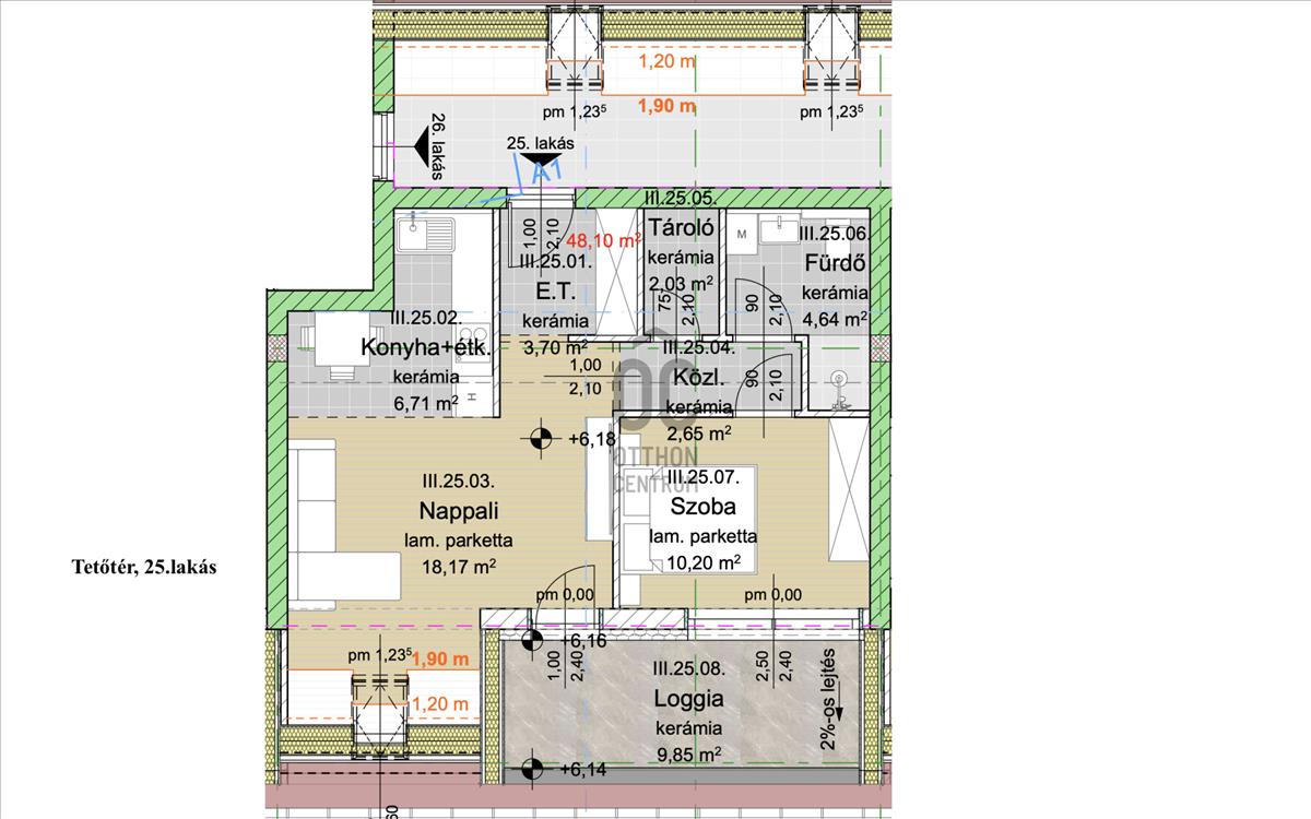 -Az erkélyek csúszásmentes és fagyálló gres burkolattal