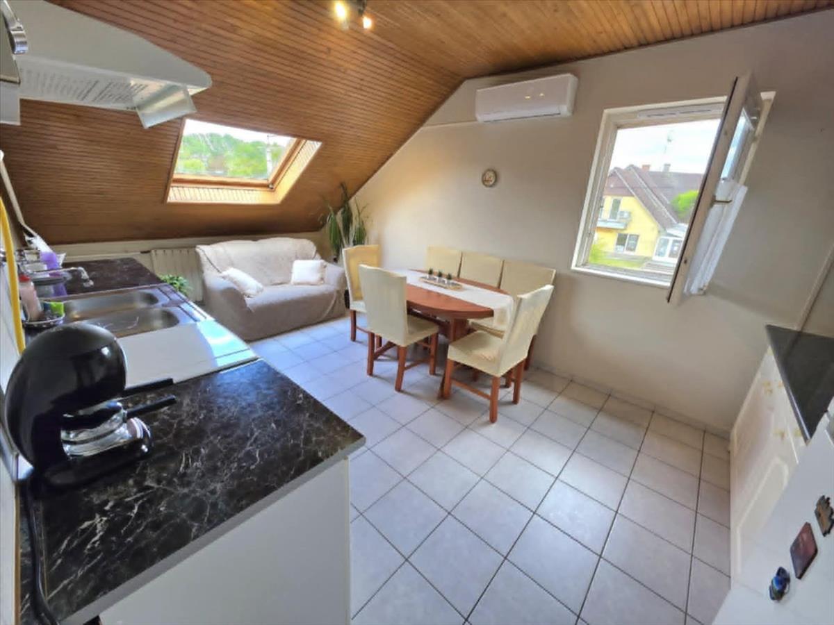 Bács-Kiskun vármegye, Kiskunhalas Kertvárosi részén, frekventált helyen 76 m2-es, 1. emeleti lakás eladó! a lakás saját lépcsőházból megközelíthető. Kialakításra került benne 2 szoba, étkező+konyha, kamra, közlekedő, fürdőszoba (káddal és tusolóval), wc. Fűtéséről gázkazán gondoskodik radiátoros hőleadással. Nyílászárói fa szerkezetű, hőszigetelt ablakok. a jelenlegi alaprajzi elrendezés könnyen változtatható, kialakítható egy amerikai konyhás nyitott tér. Az ingatlan elhelyezkedése kiváló, közvetlen közelében található, posta, bolt, gyógyszertár, iskola, étterem. Igény esetén a lakáshoz vásárolható a közelben egy önálló helyrajziszámmal rendelkező, 17 nm-es garázs, melyben a villamos hálózat saját mérőórával kiépített, ára: 8. 200. 000. - Ft.