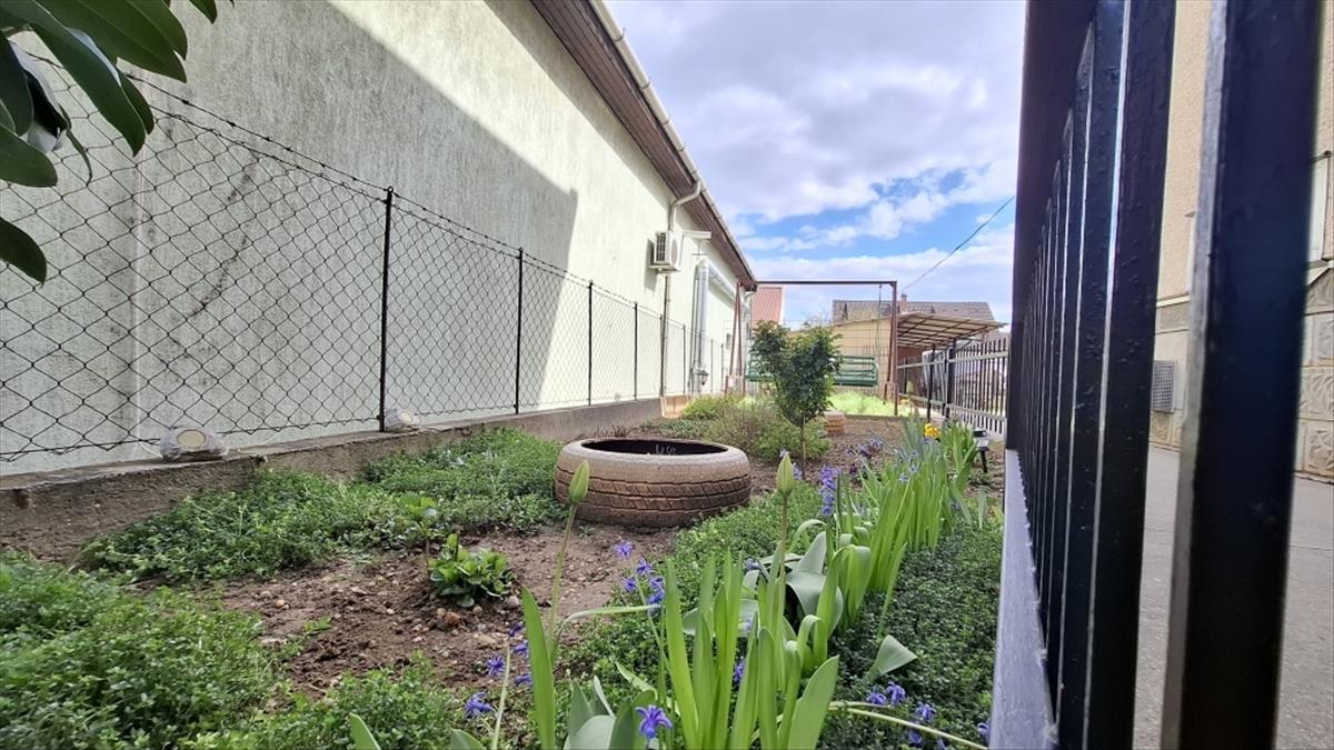A kert füvesített, szőlővel és tujákkal körbekerített, lehetőséget adva a kellemes hangulatú családi vagy társasági összejöveteleknek.