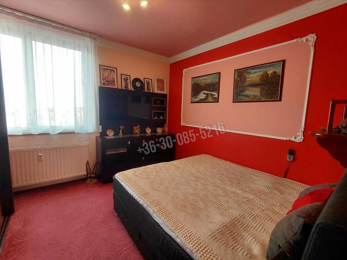 - Hálószoba: padlószőnyeg, nagyméretű tükrös gardrób, motoros boxspring franciaágy