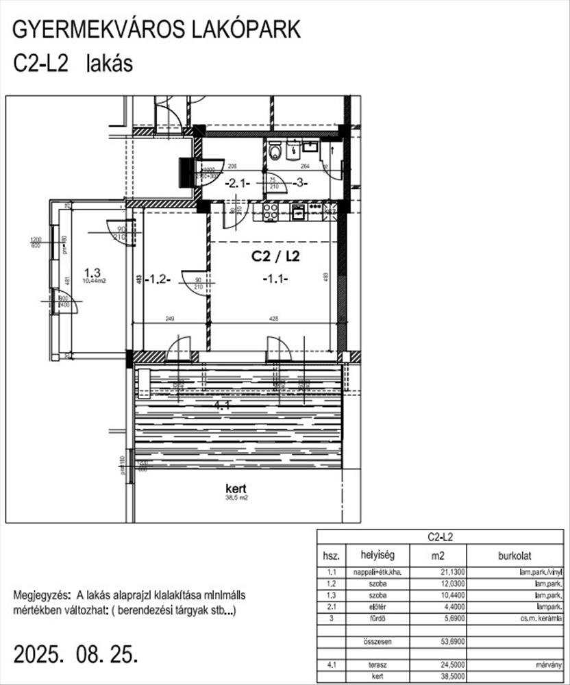 C/2-L2 lakás földszinti, 55 nm -es. Tartozik hozzá egy 24, 5 nm -es Terasz, 38, 5 nm -es saját Kert.