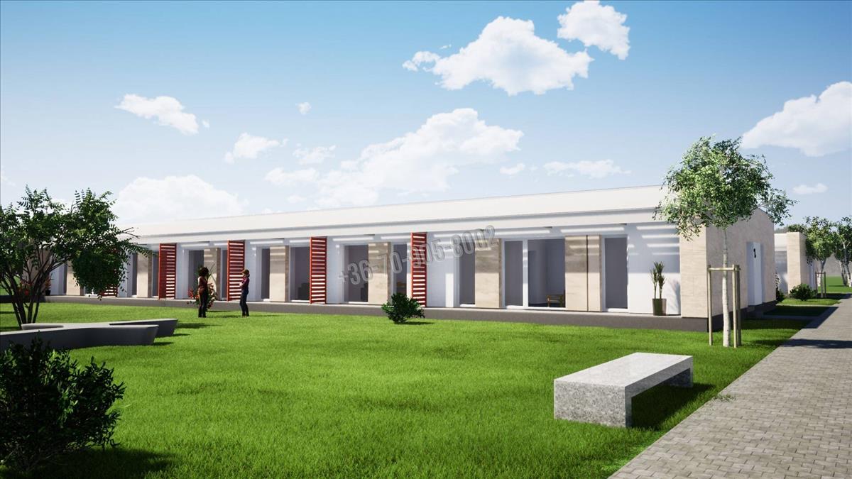 2 db földszintes, kertkapcsolatos épület (2 × 8 lakásos)