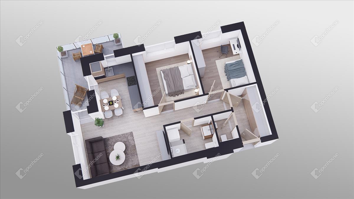 60, 54 m² alapterület +10, 62 m² terasz + 221, 47 m² kertkapcsolat