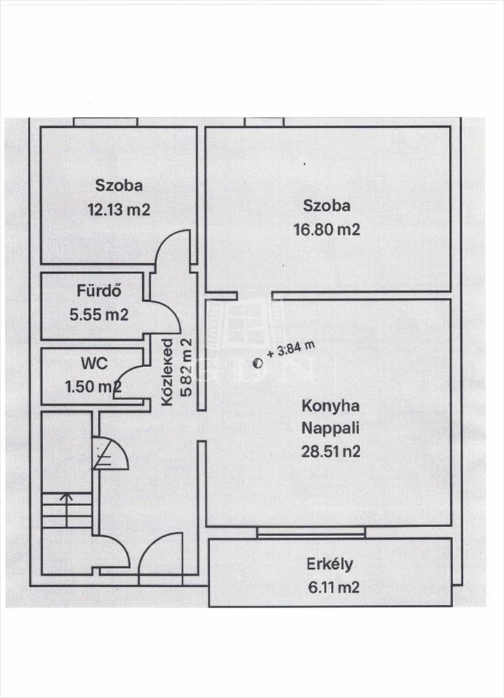 Az emeleten elhelyezkedő ingatlan 94 négyzetméter nagyságú, amerikai konyhás nappalival, 3 szobával, fürdővel, WC-vel, közlekedővel és előtérrel rendelkezik.