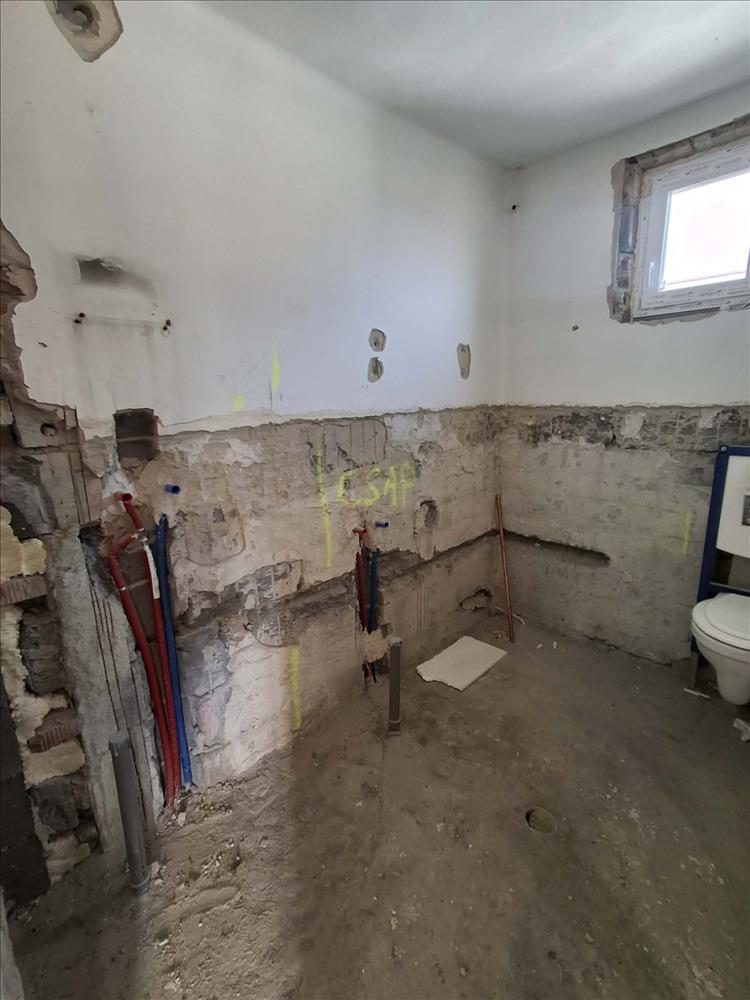- Egy fürdőszoba zuhany, sarokkád, WC-vel közösen, illetve egy külön wc, és egy külön gépészeti tér mosókonyhával egyben kialakítva. Wc -k falisík előtti, Geberit tipus. a víz kialakítása egy kondenzációs System fűtő kazán, és hozzá csatoltható indirekt fűtésű hmv tárolóhoz lett kialakítva, Cirkulációs vezeték szintén kiépítve