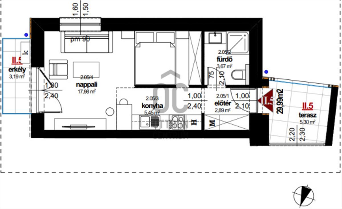 - Alapterület:34 m2