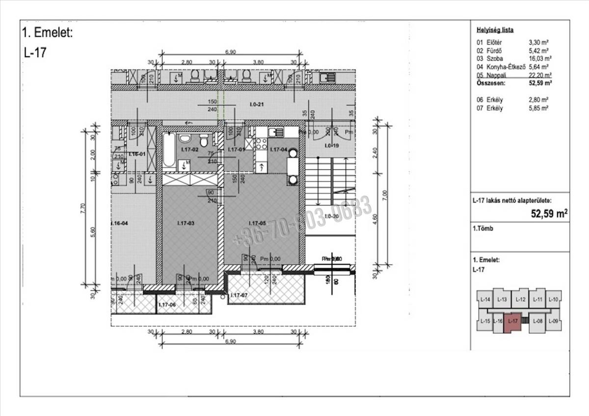 Jelen hirdetésben szereplő első emeleti 52, 59 m2 hasznos alapterülettel rendelkezik, elosztását tekintve rendelkezik egy amerikai konyhás nappalival, hálószobával, egy fürdőszobával, valamint egy 5, 85 nagyságú erkéllyel.