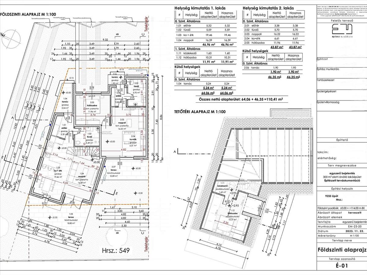 Tetőtér: 10, 31 m2 háló, 1, 6 m2 közlekedő.