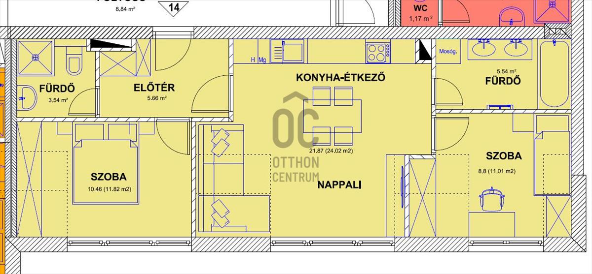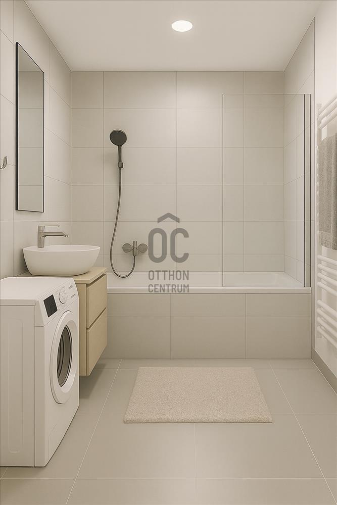 A 56 m²-es, két külön nyíló szobával rendelkező lakás ideális választás lehet pároknak vagy családoknak is. Az egyik fürdőben zuhanyzó és wc áll rendelkezésre, a másikban pedig kád, hogy mindenki a saját ritmusában kezdhesse a napját.