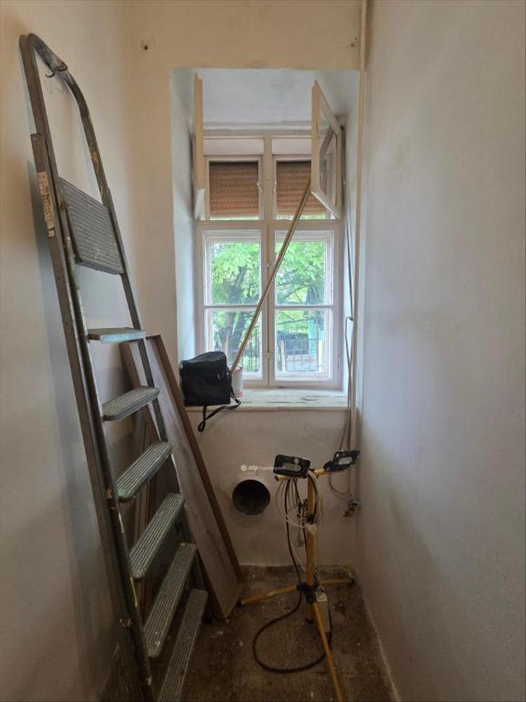 A lakásban mindkét szobában új laminált padlót tesz le a tulaj. Az egyik szoba elkészült, a másik folyamatban. a fűtésről mind gáz kazán, mind gáz konvektor gondoskodik.
