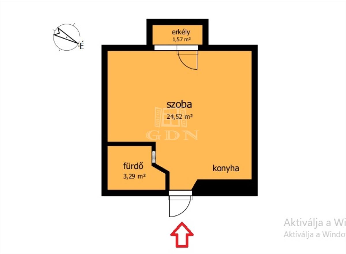 A lakás a harmadik emeleten helyezkedik el, 26 négyzetméter alapterülettel. Az ingatlan egy szobából áll, amely jelenleg amerikai konyhás, de szabadon alakítható. Ez a lakás kiváló választás lehet, ha központi helyen lévő, mégis csendes otthont keres. Ideális lehet egyedülállók vagy párok számára, de akár irodának is alkalmas.