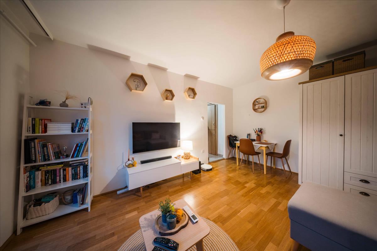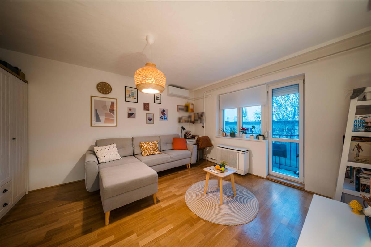 A bejárattól balra nyílik a világos nappali, amely meleg fa parkettájával, barátságos fényeivel és otthonos hangulatával a lakás igazi szíve. Innen érhető el a kellemes méretű erkély, amely a szigeteléskor igényesen megújult burkolatot kapott, így tökéletes helyszíne lehet egy reggeli kávénak vagy egy hosszú nap utáni csendes pihenésnek. Mellette egy külön nyíló félszoba található, amely hálószobának, dolgozónak vagy akár gyerekszobának is ideális, intimebb, nyugodt teret biztosítva.