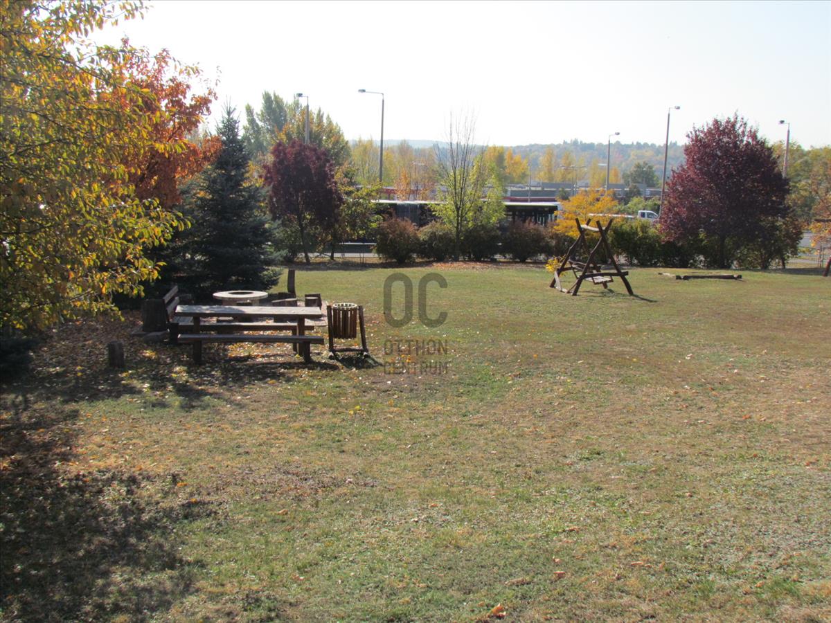 -gondozott közös kert játszótérrel, szalonnasütővel, pihenőpadokkal