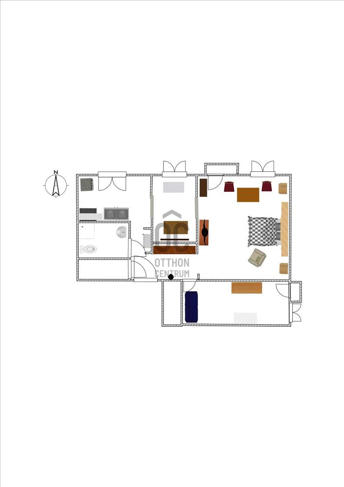 - a félszoba a konyhával és a kisebbik hálószobával nyílik egybe