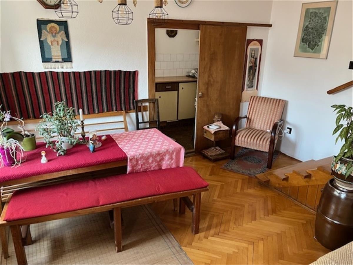 Eladó Miskolc Újdiósgyőrben, a dvtk stadion közelében, 1969-ben épült, 3 lakásos tégla építésű társasházban lévő, D-Ny-i tájolású, 206 m2-es kertkapcsolattal rendelkező 116 m2-es lakás. Pinceszinten (22 m2) kazánház, tároló, wc, Földszinten (47 m2) előtér, 1 szoba, étkező, konyha, éléskamra, mosdó-wc, Emeleten (47 m2)2 szoba, 1 fürdőszoba-wc, előtér helyiségekből áll. a lakáshoz tartozik 1 gépkocsi tárolására alkalmas garázs.